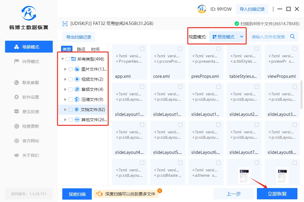 4. 數據掃描好了之后,通過下方的“預覽模式”來預覽文件,之后選擇要進行恢復的文件,點擊“立即恢復”就可以了。