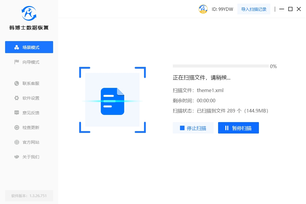 3. 系統正在識別和掃描文件,用戶無需進行任何手動操作,只需靜靜等待操作完成。