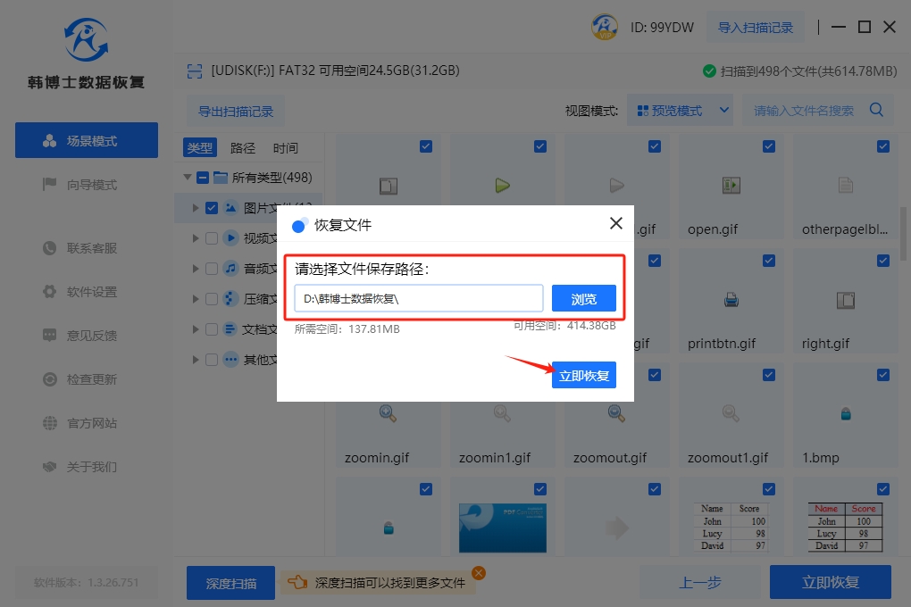 4. 完成掃描后,您可以先點擊“預(yù)覽模式”,確認(rèn)文件是否正確,然后選擇您想要恢復(fù)的數(shù)據(jù),最后再點擊“立即恢復(fù)”。