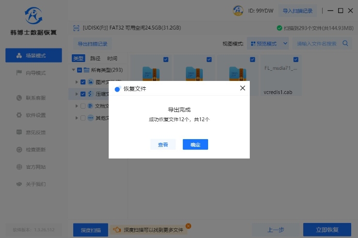 1. 首先打開桌面上的韓博士數據恢復軟件,然后點擊“場景模式”,選擇“U盤/內存卡恢復”,恢復過程即將開始。