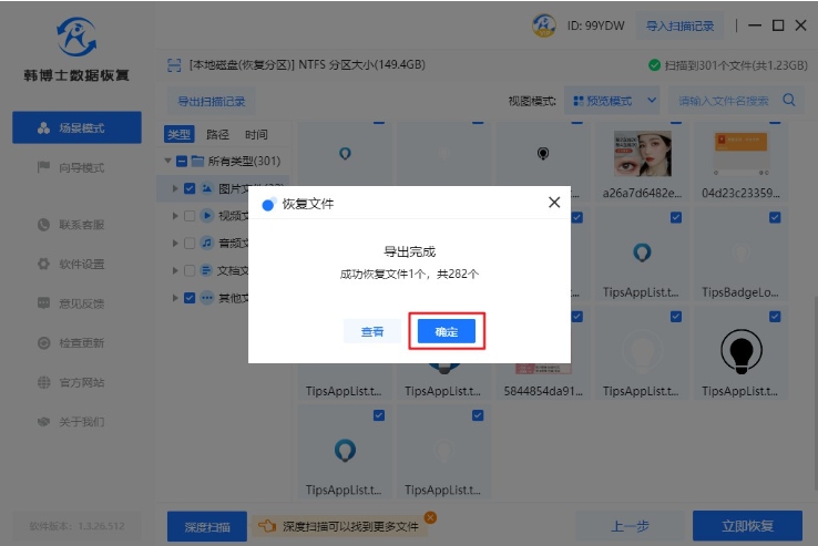 6. 硬盤數(shù)據(jù)恢復完成后,最后一步是點擊“確定”按鈕,以確認并結(jié)束整個恢復過程。