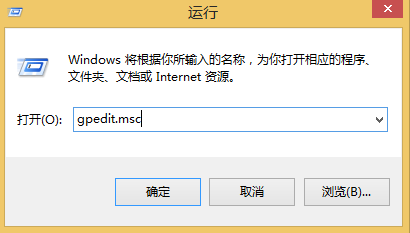 1.打開win8系統中的運行窗口,輸入gpedit.msc命令后回車。