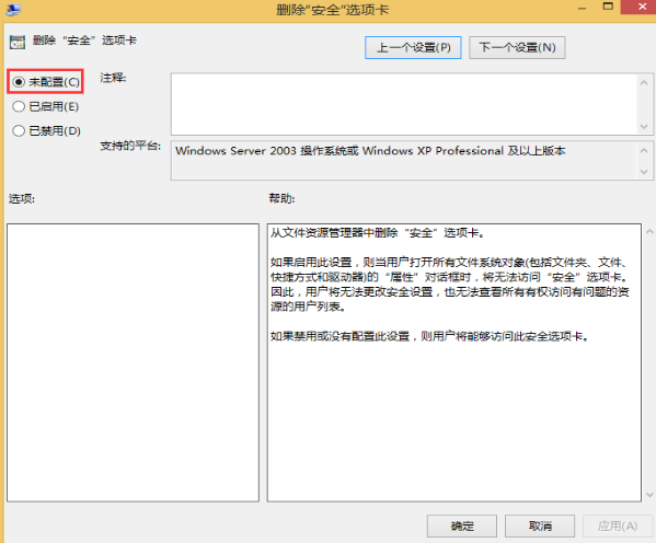 3.在打開的窗口中將其設置為“未配置”或者“已禁用”,最后保存設置。