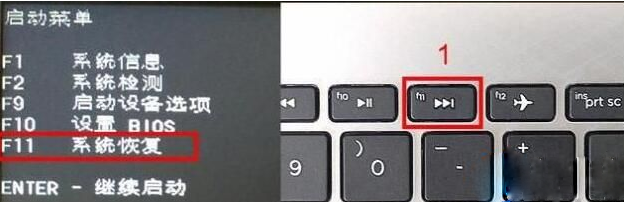2.在調(diào)出的啟動菜單界面中,直接在鍵盤上按下“F11”按鍵進(jìn)入操作。