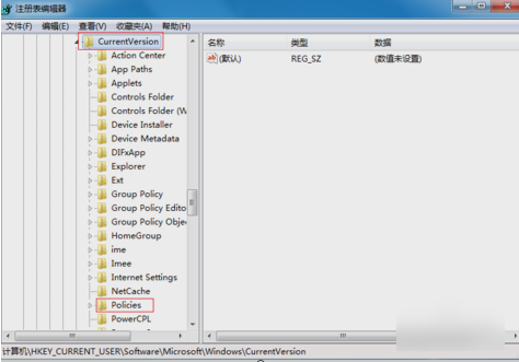 2.在打開(kāi)的界面中依次展開(kāi)以下選項(xiàng):HEKY_CURRENT_USER- Software- Microsoft- Windows- CurrentVersion- Policies