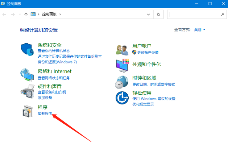 2.打開電腦中的控制面板,選擇界面中的“程序”進入。