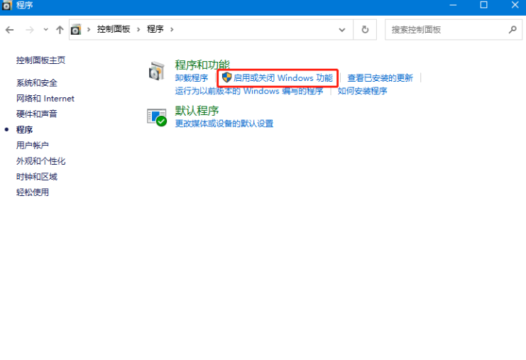 3.直接在打開的界面中點擊“啟用或者關閉windows功能”選項進入。