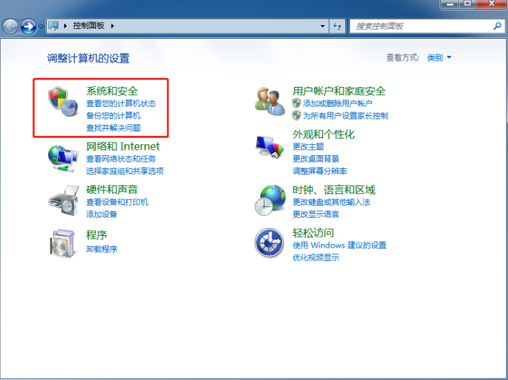 1.打開win7系統中的控制面板界面,直接選擇“系統和安全”選項進入。