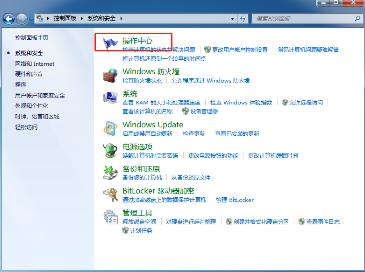 2.電腦會打開相應的界面,大家直接選擇“操作中心”進入,如圖所示: