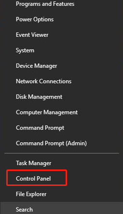1.按下win+X調出以下快捷菜單,隨后選擇控制面板“Contral Panel”進入。