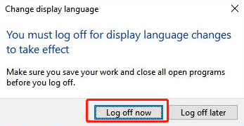 5.電腦會彈出對應提示框,直接點擊Log off now進行重啟電腦,最后會進入全新中文版的win10桌面。