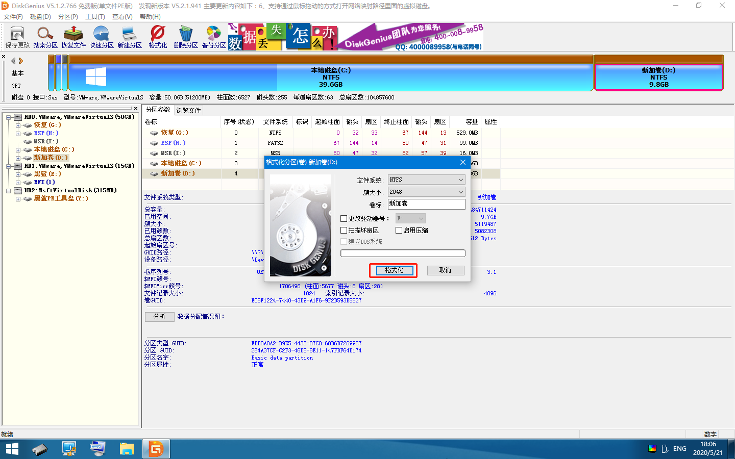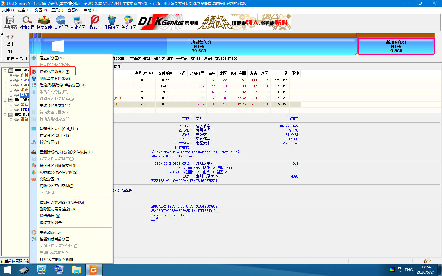 或者右鍵選中需要格式化的分區(qū),最后進行“格式化當(dāng)前分區(qū)”。