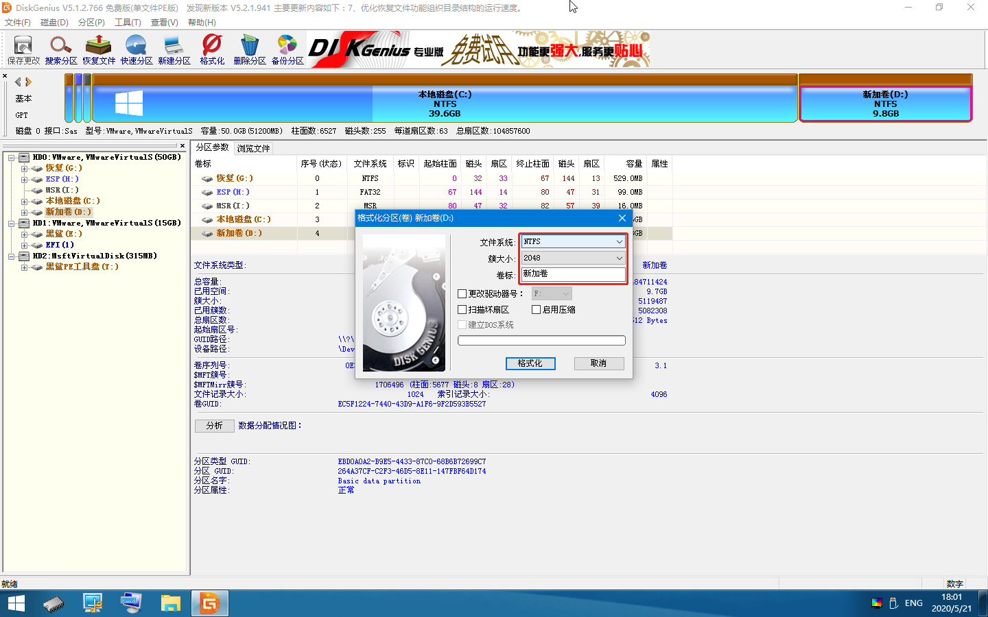 4.在彈出的窗口中,可以根據(jù)自己需要對文件系統(tǒng)類型、簇大小、卷標(biāo)進行設(shè)置。