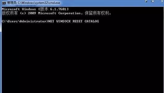 2.電腦會彈出對應的界面,直接輸入“NETSH WINSOCK RESET CATALOG”命令后回車就可以了。