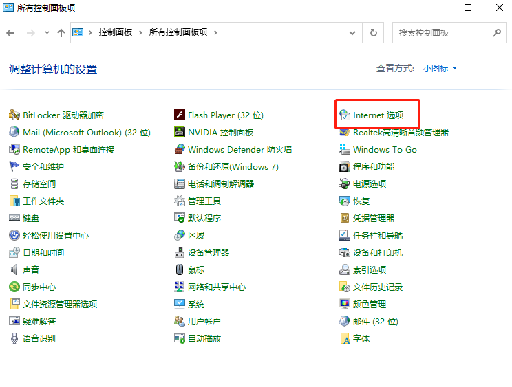 1.打開電腦中的控制面板界面,開始在界面中選擇internet選項進入。