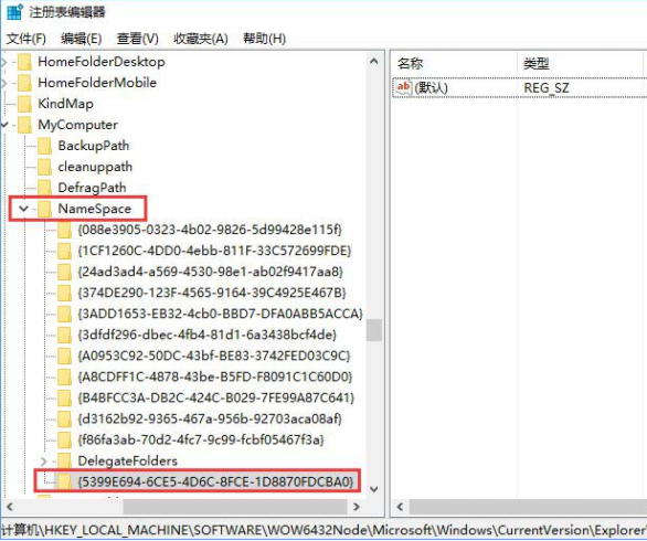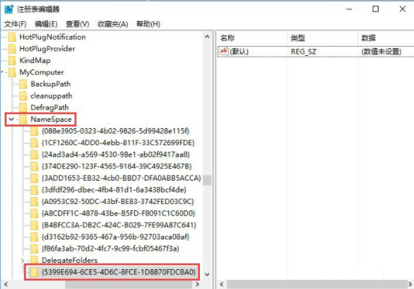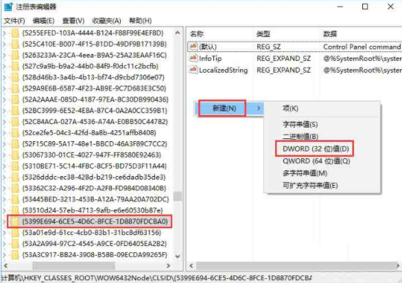 6.繼續定位到以下界面,右鍵新建項,命名為{5399E694-6CE5-4D6C-8FCE-1D8870FDCBA0}
