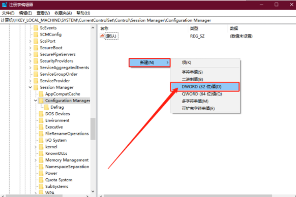 3.在右側(cè)空白處新建“DWORD(32位)值”。