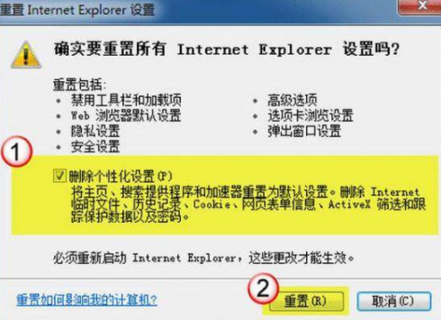 3.直接勾選以下復選項,最后點擊重置進入下一步操作。