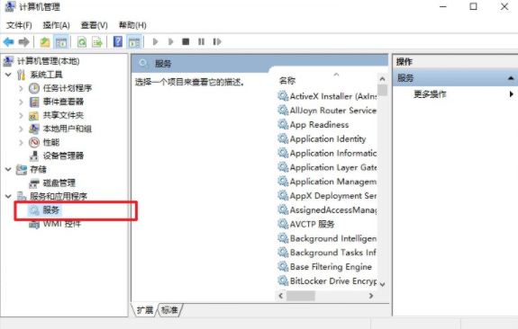3.打開計(jì)算機(jī)管理界面,找到服務(wù)進(jìn)入。