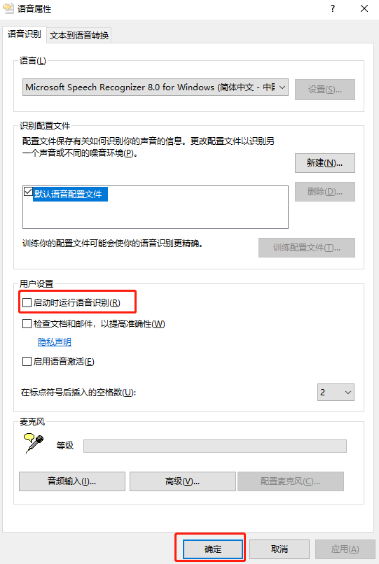 4.在彈出的語音屬性界面中,取消勾選以下選項,最后保存設置。