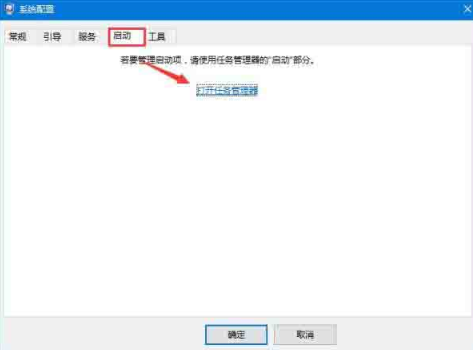 2.電腦會彈出系統(tǒng)配置界面,隨后切換到啟動選項(xiàng),打開任務(wù)管理器。