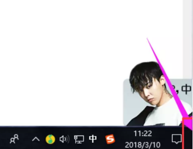 Win10任務欄右下角最邊緣的地方,有一個小豎條,點擊這個小豎條,就可以快速切換到桌面。
