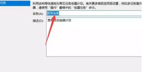3.在名稱欄中輸入有意義的便于識記的名字,比如寬帶連接等。