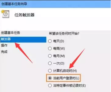 4.選擇左邊的觸發器,并且選擇當前用戶登錄。