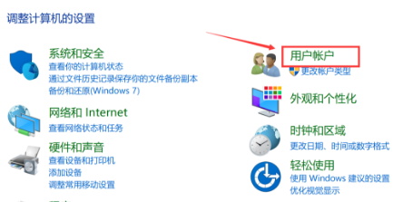 1.打開桌面上的控制面板,進去之后選擇用戶賬戶。