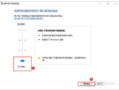 3.將左邊拉到最下面(從不通知),點擊確定。