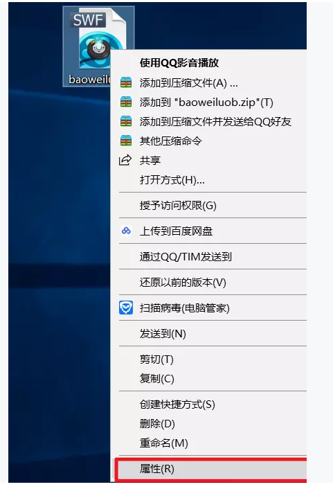 2.安裝完成后,用鼠標右鍵單擊swf文件,在彈出來的菜單中選擇“屬性。