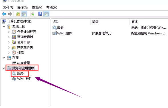 2.打開計算機管理界面,點擊“服務和應用程序”-“服務”。