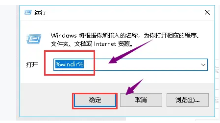 5.按住 “Win+R”快捷鍵,打開運行對話框,輸入 %windir%。