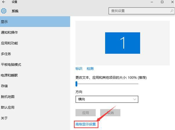 2、下拉顯示界面,找到“高級顯示設(shè)置”進(jìn)入。