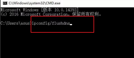 2、在以下窗口中輸入“ipconfig/flushdns”命令回車。