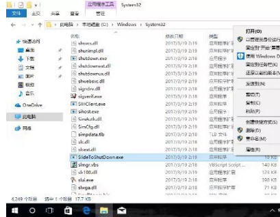 定位X:\Windows\System32文件夾目錄,找到“SlideToShutDown.exe”(X代表系統(tǒng)安裝盤(pán))。