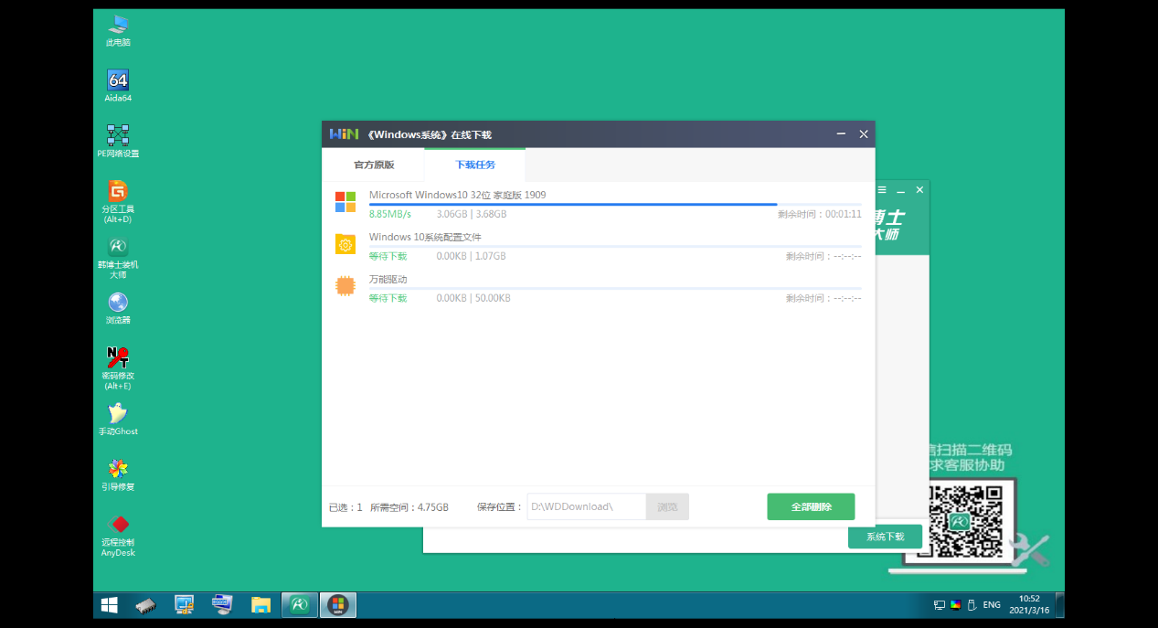 韓博士將下載PE鏡像文件,下載完成后,本地模式安裝完成。