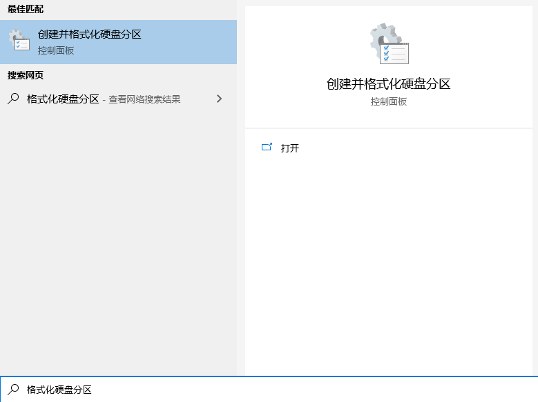 1. 按下 Win+Q,在彈出的搜索框中輸入“格式化分區”,選擇創建并格式化硬盤分區