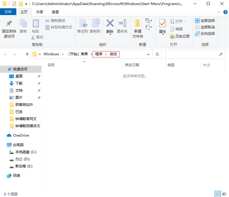3.開機啟動文件夾如圖所示,此時文件夾中內容為空。