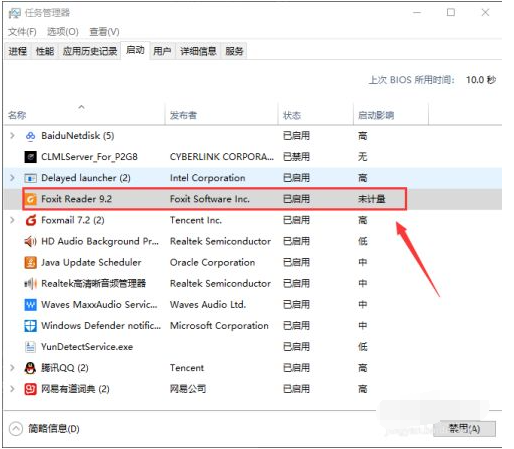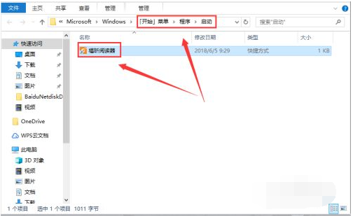 4.如果想要添加啟動項,可以將軟件快捷方式移入開機啟動文件夾中,比如移入“福昕閱讀器”。