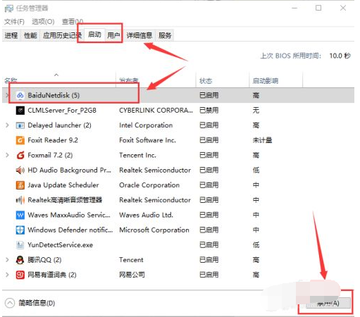 6.如果想要刪除開機啟動項,可以選中該程序,然后設置“禁用”即可。
