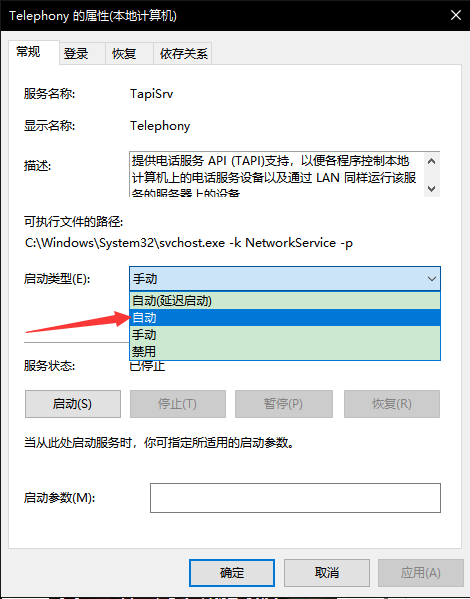 3.雙擊【Telephony】,也將啟動類型設置為【自動】。
