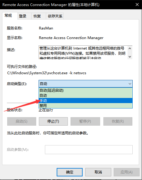 4.最后雙擊【Remote Access Connection Manager】,將啟動類型設置為【手動】。