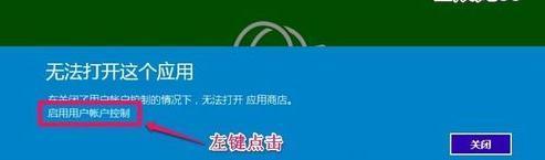 1.在彈出無法打開的界面中點(diǎn)擊【啟用用戶帳戶控制】。