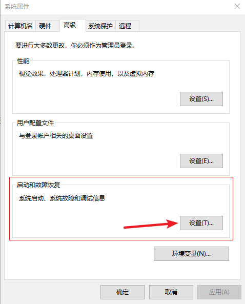 4.彈出系統(tǒng)屬性界面,選擇啟動和故障恢復(fù)下的【設(shè)置】。