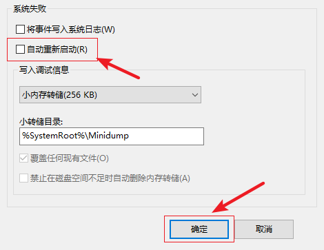 5.在系統(tǒng)失敗下,把【自動重新啟動】前的勾取消,然后點擊【確定】即可。