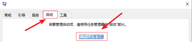 4.上方選項卡切換到【啟動】,然后點擊【打開任務管理器】。