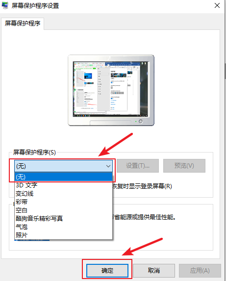 3.在屏幕保護程序的下拉框選擇【無】,然后點擊【確定】按鈕即可。