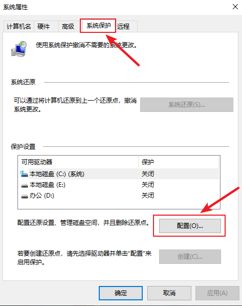 3.進入系統屬性界面,上方的選項卡切換到【系統保護】,然后點擊下方的【配置】。