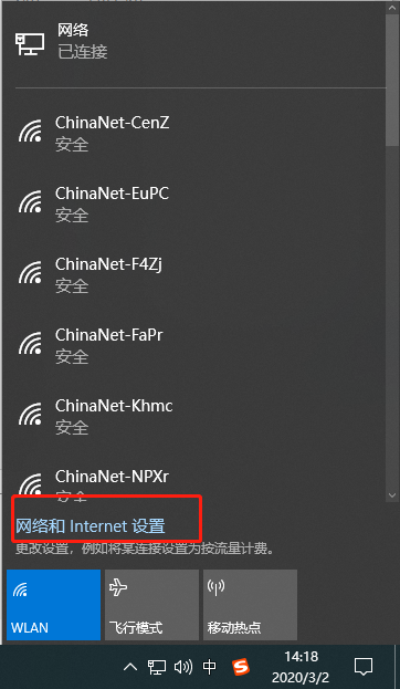 1、點擊win10桌面右下角處網絡圖標,隨后選擇“網絡和Internet設置”進入;